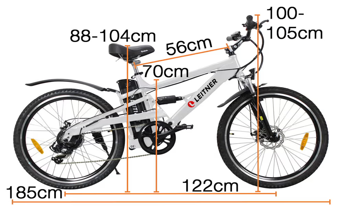 The Leitner CrossX is an affordable Electric Mountain Bike that combines performance, power for off-road adventures. Featuring 26" puncture-resistant tyres and a bold step-over frame design, it delivers both rugged looks and reliable handling. The dual suspension frame ensures a comfortable ride, even on challenging off-road terrain. Equipped with a certified battery pack with trusted Samsung battery cells, fully compliant with 2025 NSW safety standards. Paired with a powerful hub motor, this ebike makes conquering steep trails and rough paths not only possible-but fun and effortless.