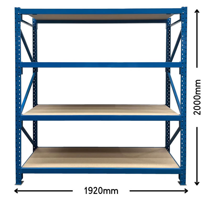 For each shelf ordered, 2 heavy duty longspan beams and a single piece 16mm MDF board